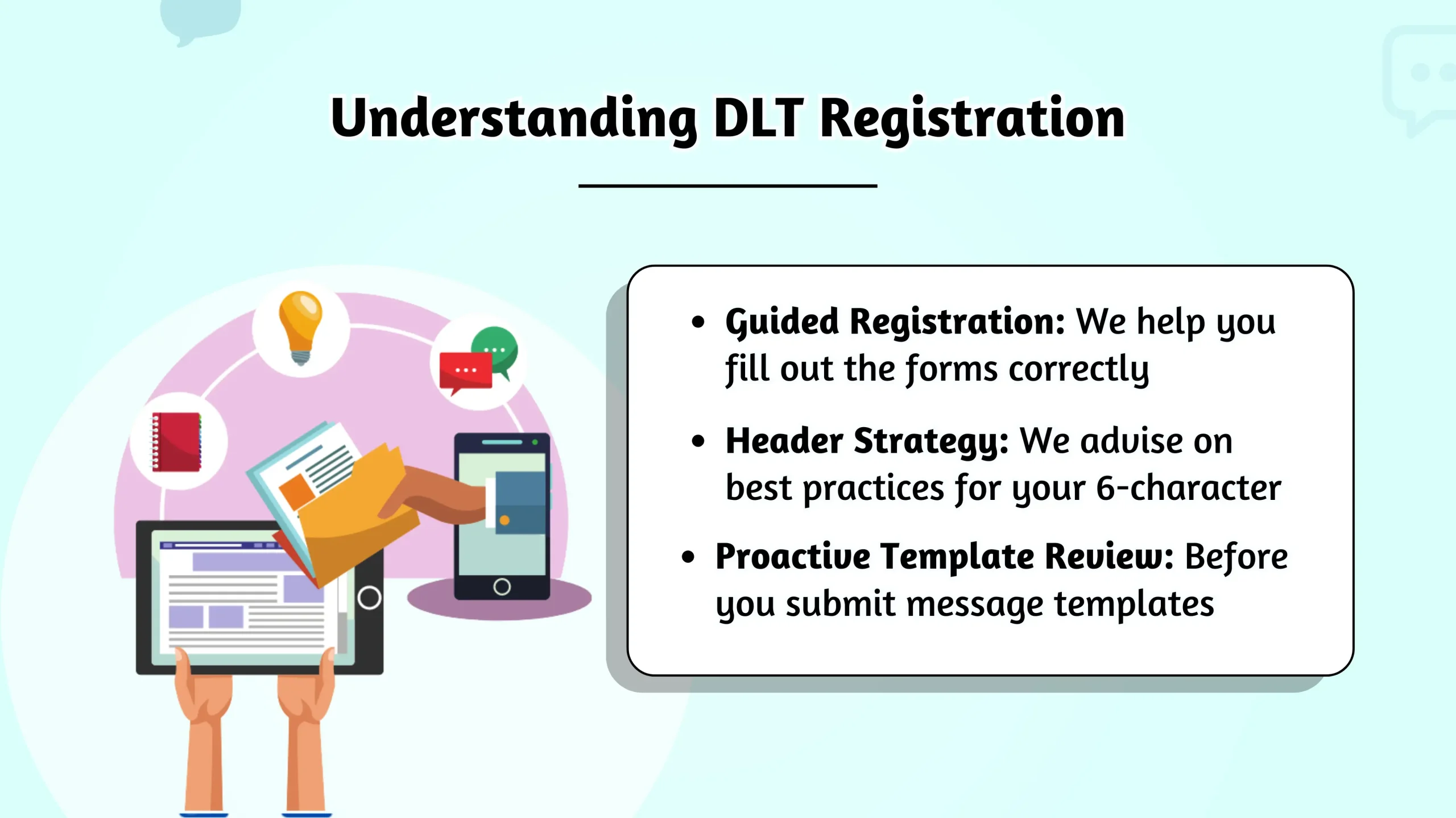 2. Let Us Handle DLT: Our dedicated team will immediately reach out to begin the guided DLT registration process.